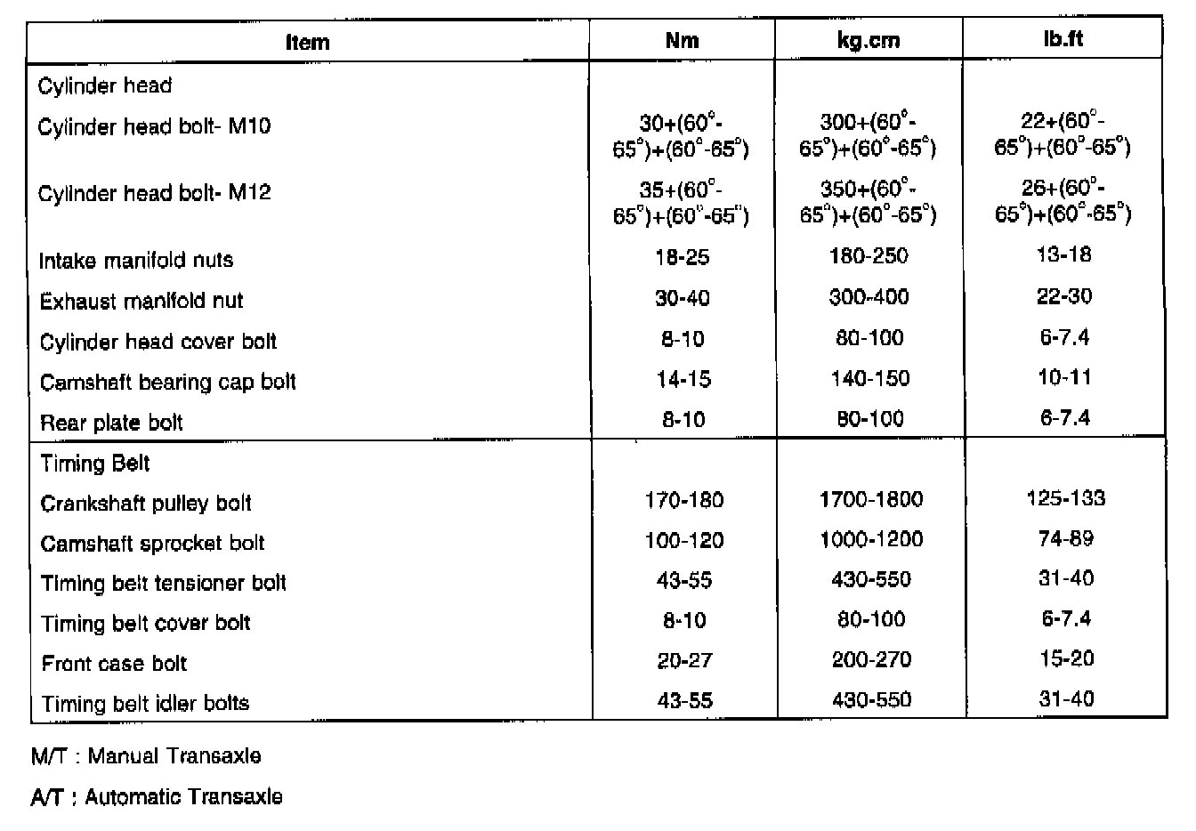 Timing Belt Cover Bolt - 8-10 Nm (80-100 kg. cm, 6-7.4 ft. lbs.)