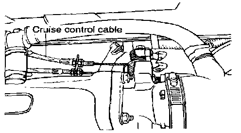 2. Disconnect the cruise control cable and throttle lever connection while turning throttle lever to the full open position.