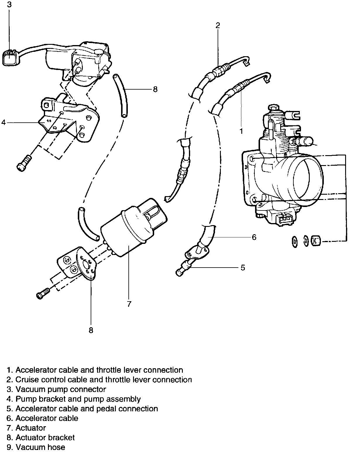 4. Remove the actuator bracket and disconnect the vacuum hose.