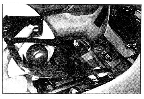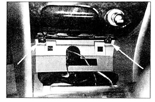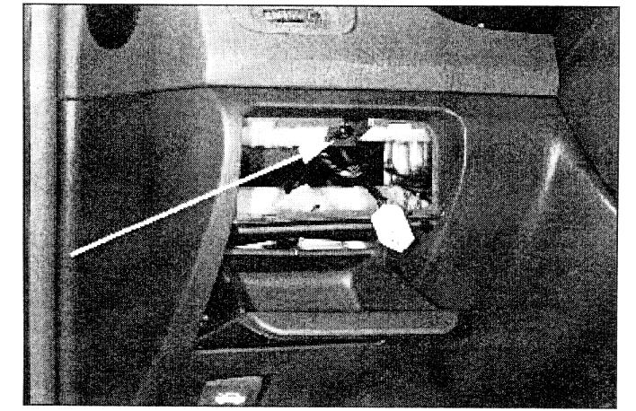 8) Remove the glovebox housing trim panel (one 10 mm nut and two screws). Make sure to leave the glovebox light switch and lamp wiring connected to ensure correct wiring orientation.