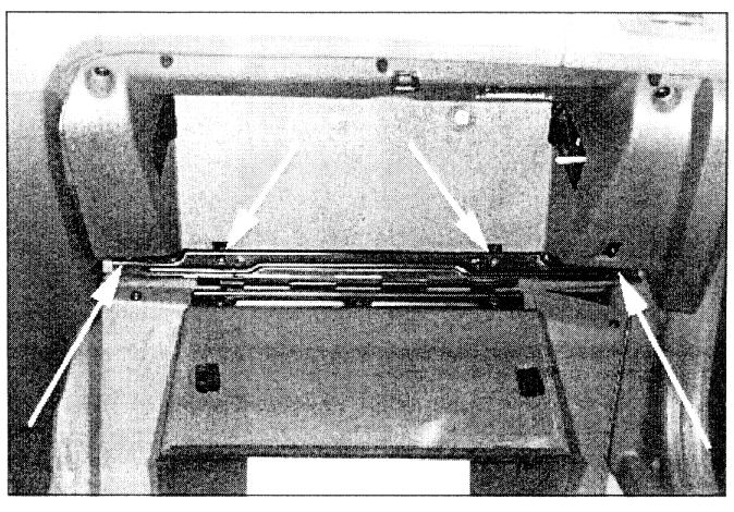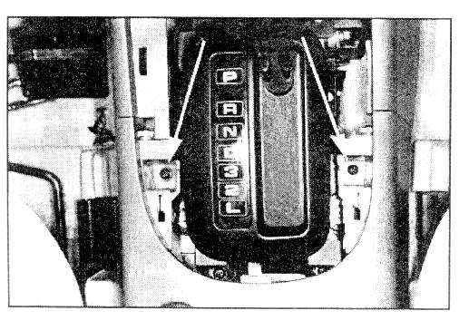 9) Remove the two screws at the front of the armrest unit and the two screws at the rear-sides. Lift the center armrest unit straight up and out.