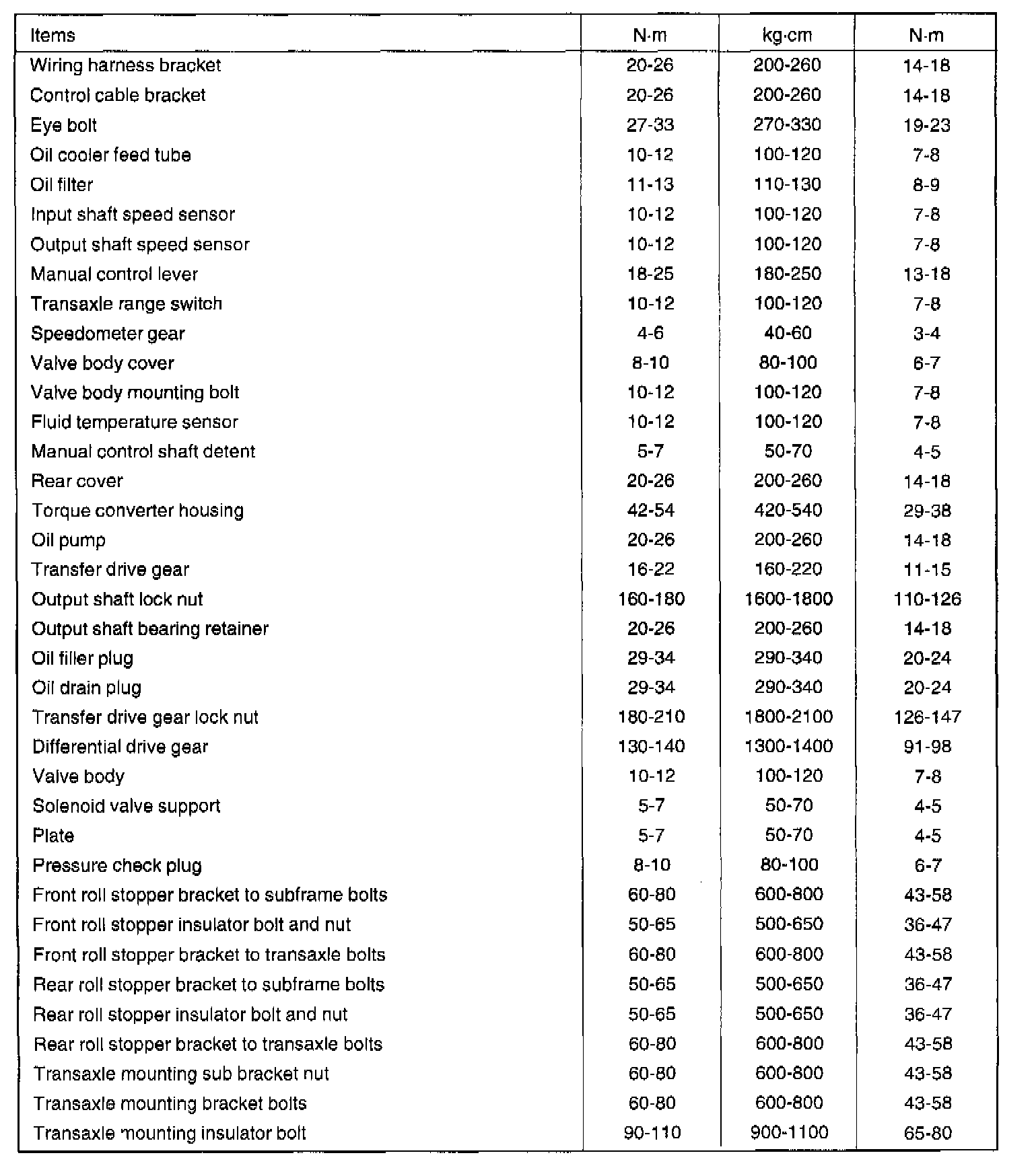 A/T Torque Data