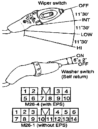 Wiper switch(Connector No.:M26-1-without EPS)(M26-4-with EPS)