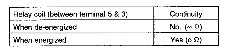 1. Check continuity of relay contacts between terminal 4 (+) and 2 (-).