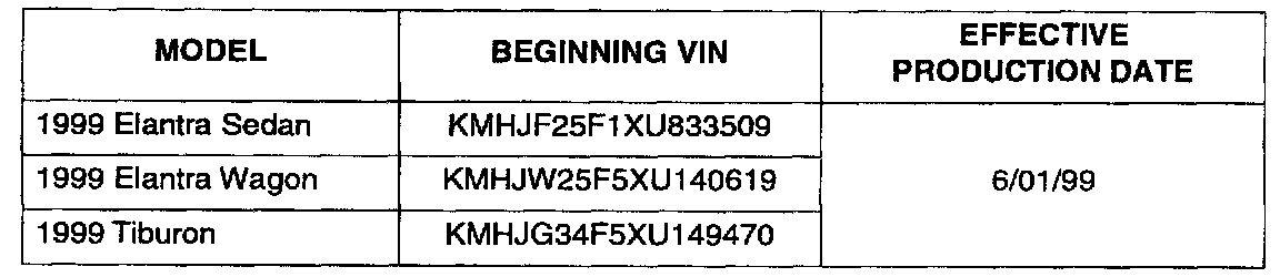 Model: 1999 ELANTRA & 1999 TIBURON