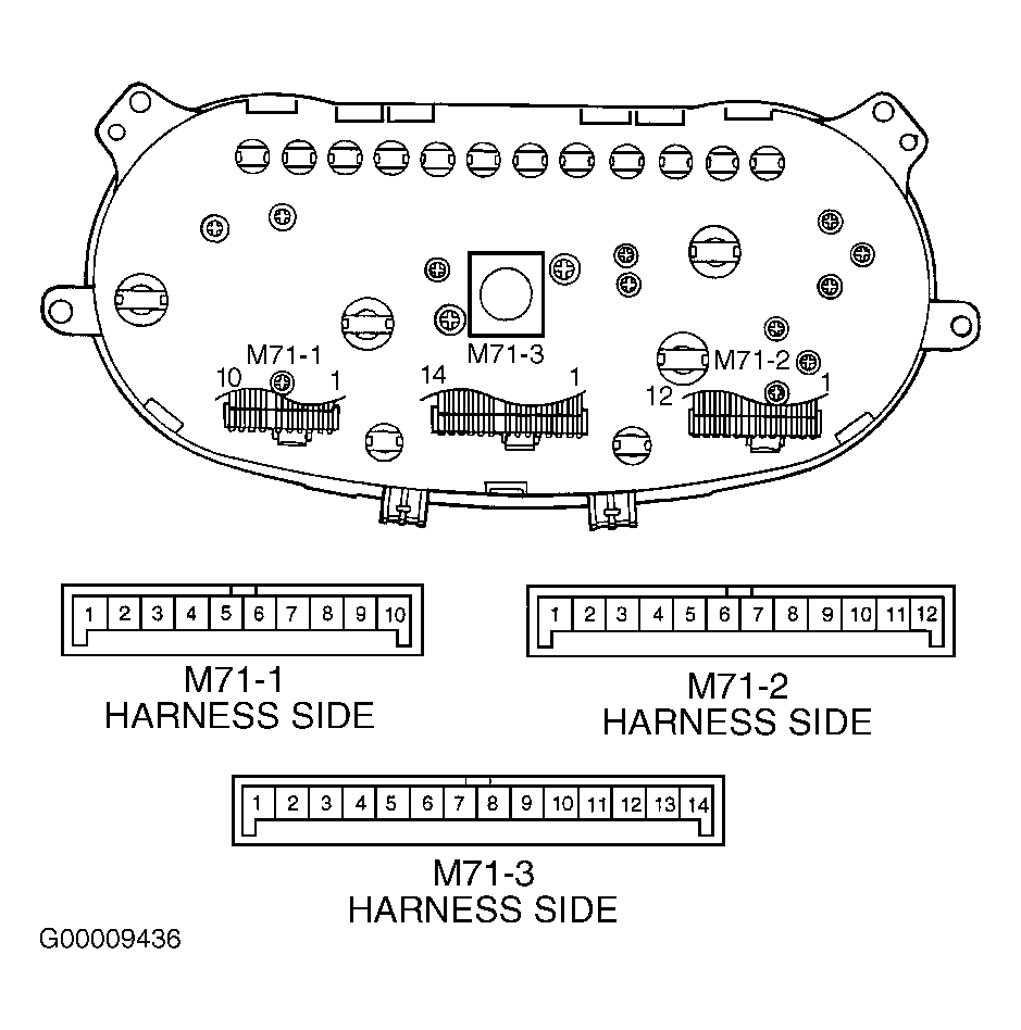 Fig 12: Identifying Instrument Cluster Connector Terminals (Accent)