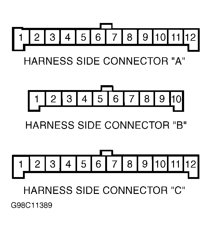 Harness connector terminal identification illustrations are generic and categorized by the number of terminals. All connector views are from the component side unless otherwise specified. For harness connector terminal identification, see appropriate HARNESS CONNECTOR IDENTIFICATION DIRECTORY table.