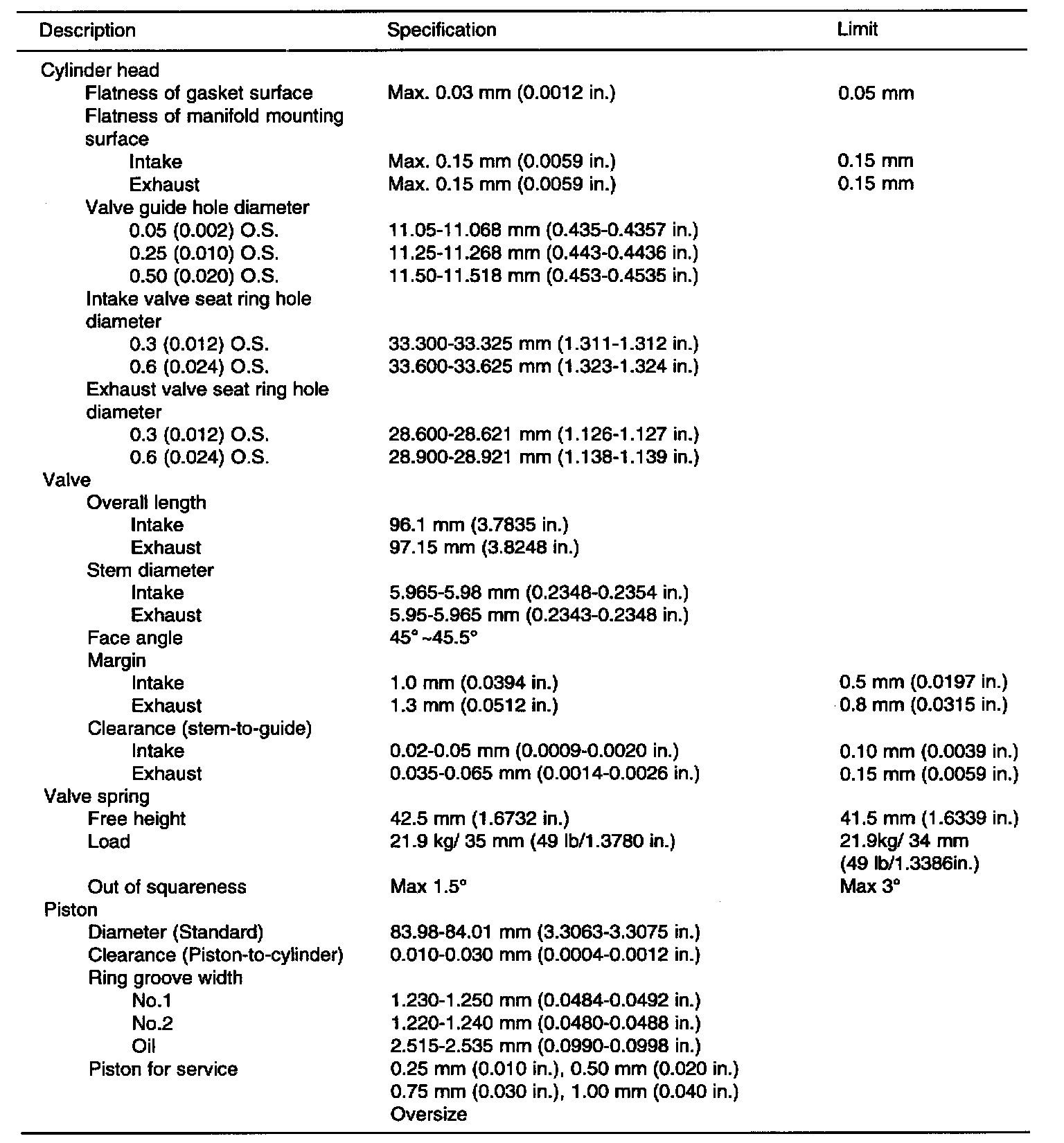 GENERAL SPECIFICATIONS