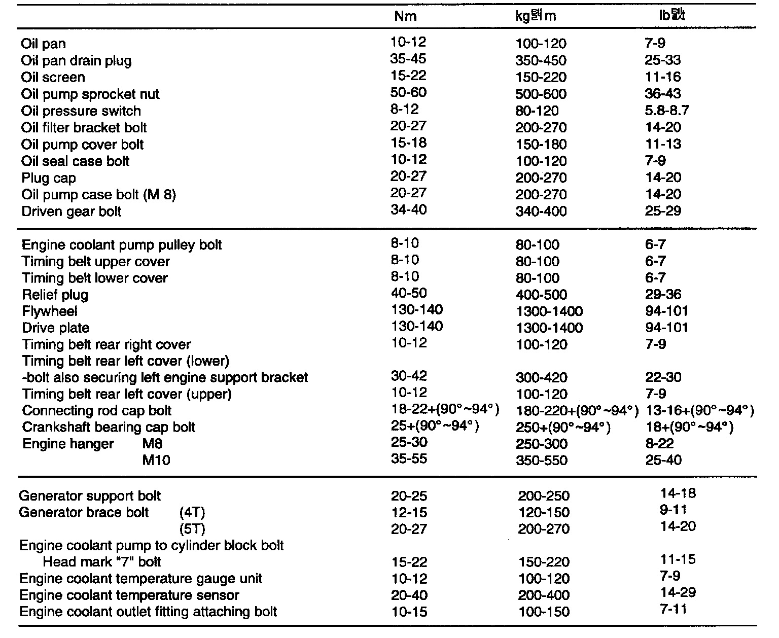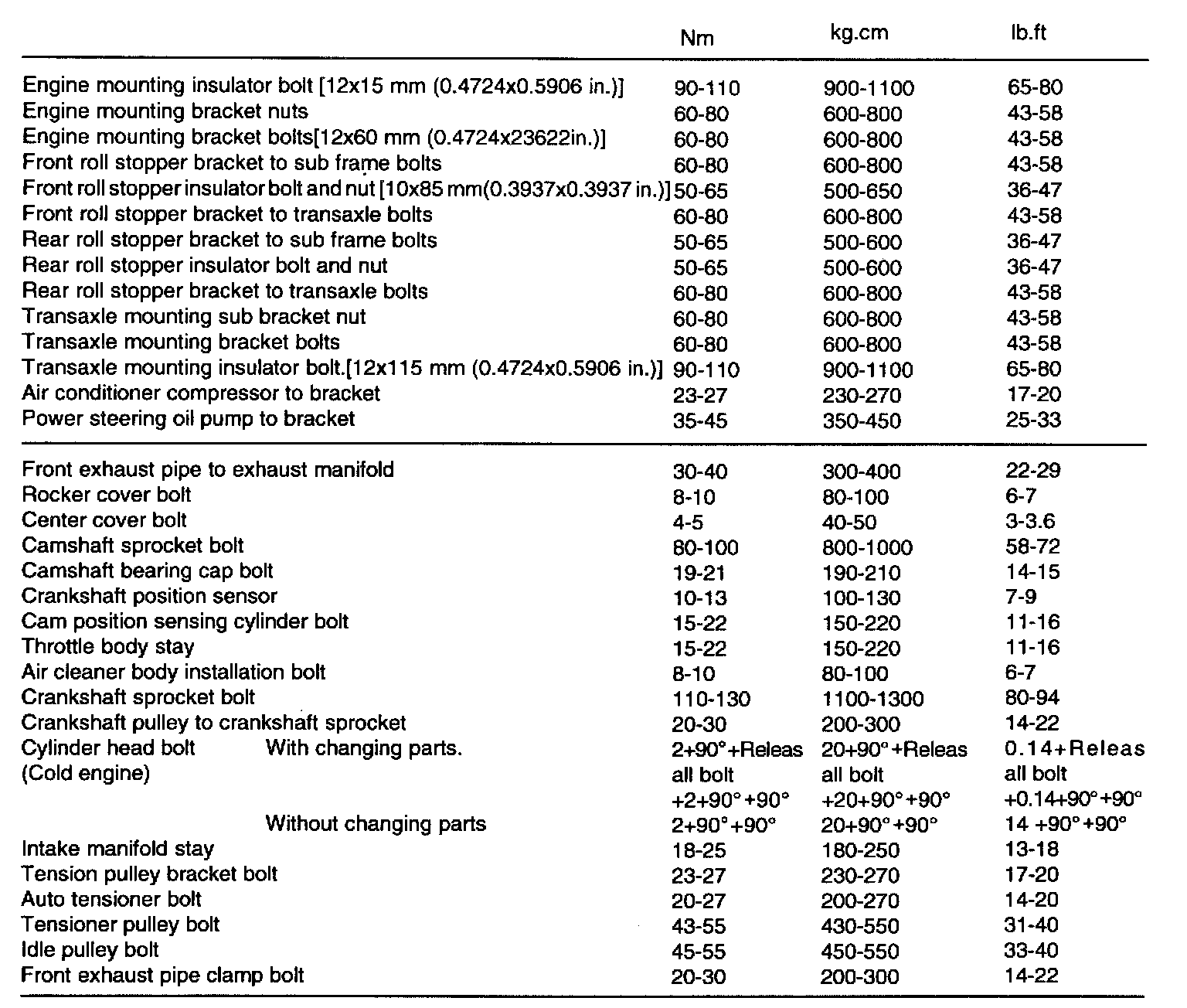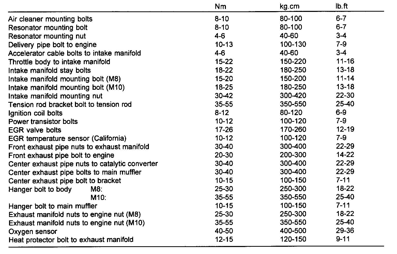 TIGHTENING TORQUE SPECIFICATIONS