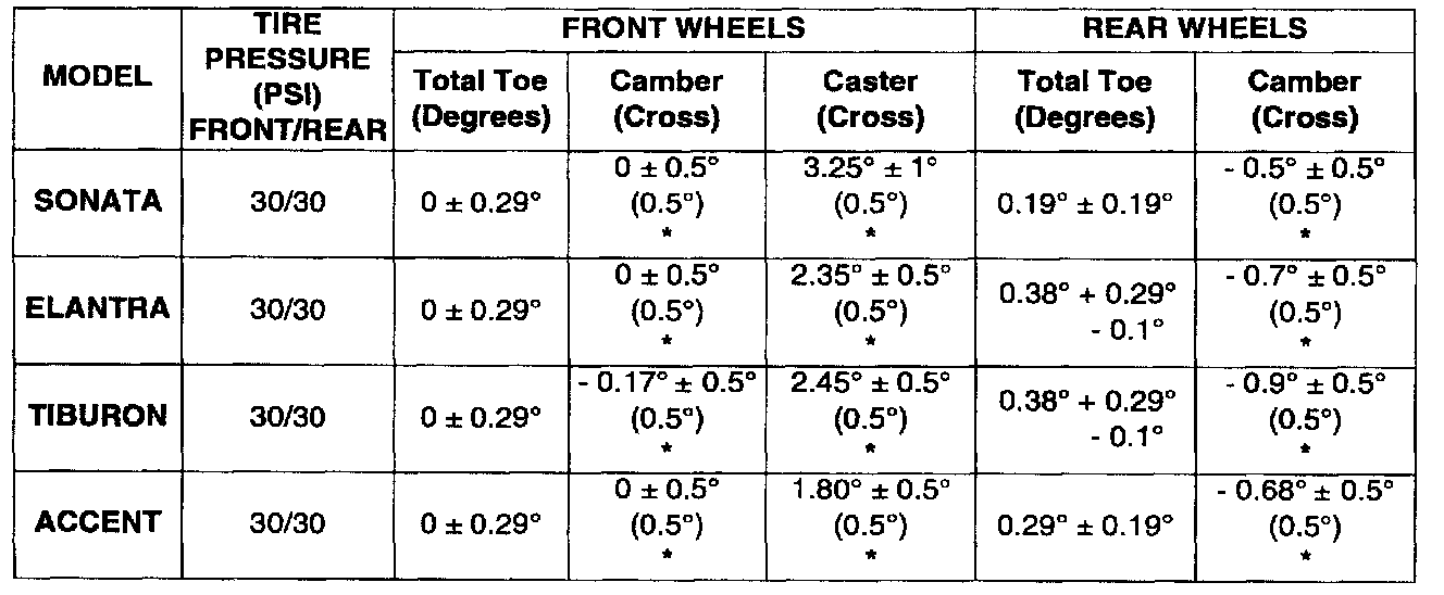 This bulletin is being issued to communicate, in chart form, the final 1999 and the initial 2000 model year vehicle alignment specifications.