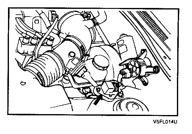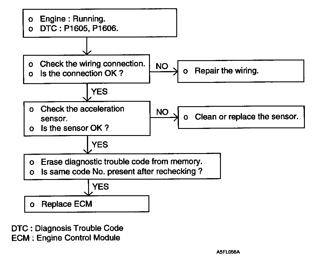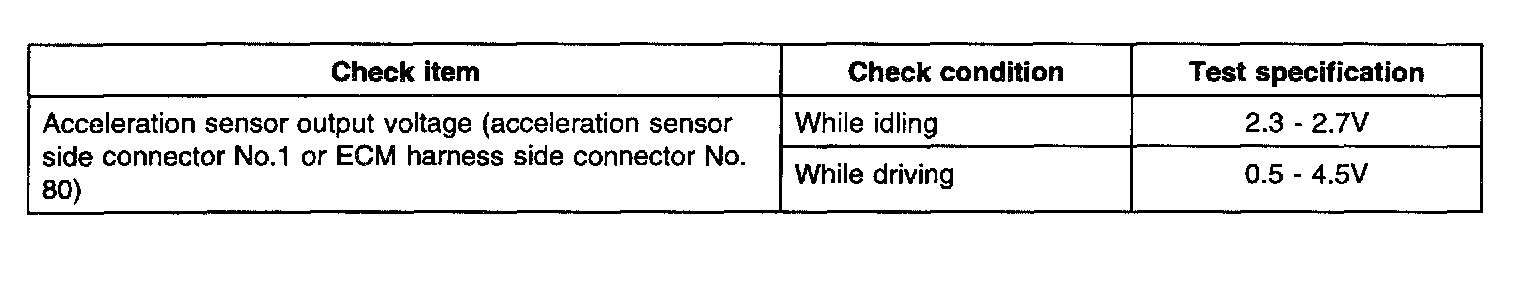 The acceleration sensor is attached in the engine compartment on the driver's side. While driving, the rough road condition is sensed by the acceleration sensor and the ECM uses this input signal to avoid the wrong misfire detection.