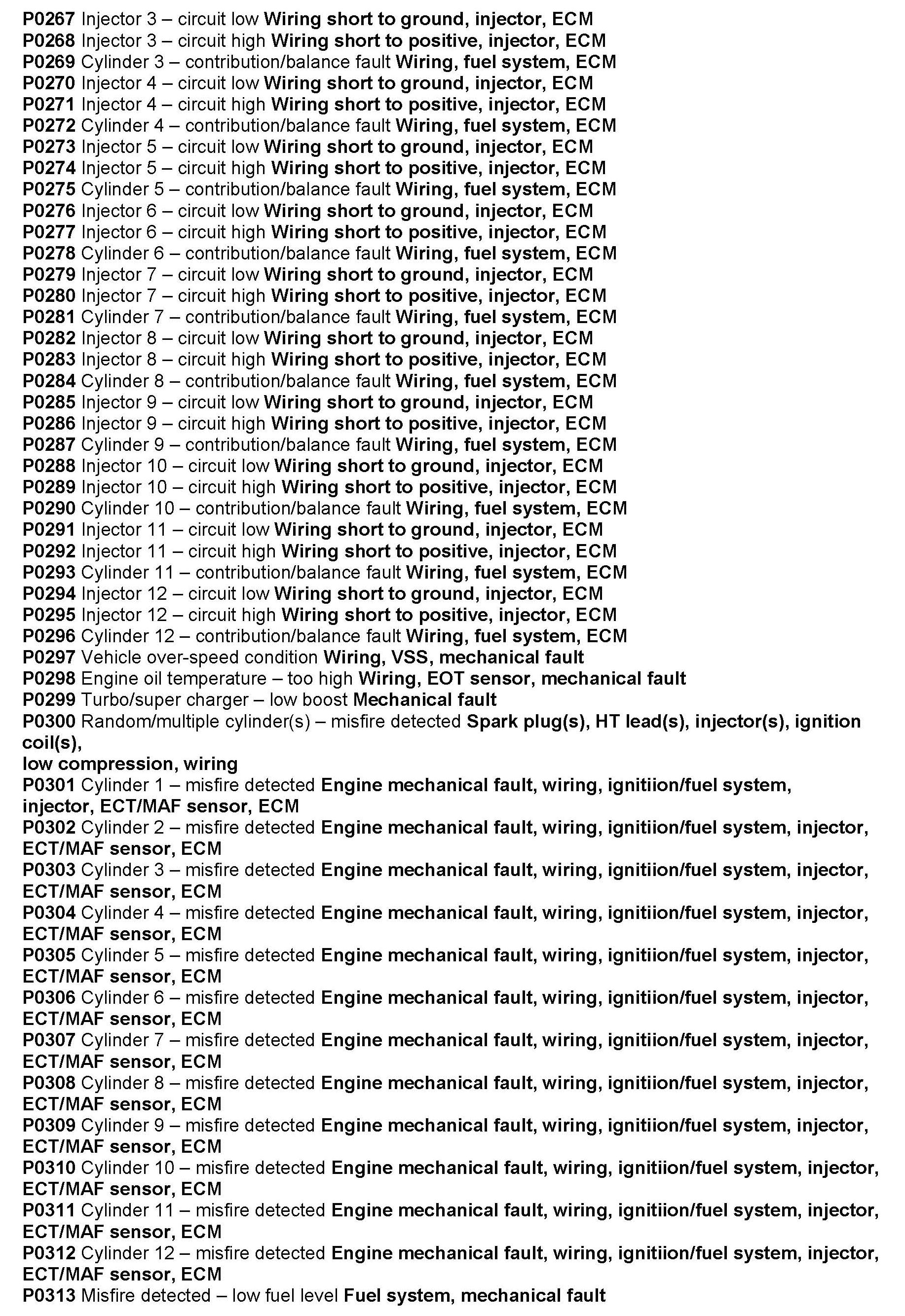 ^ All OBD-II codes starting with P zero have standard meanings irrespective of vehicle make or model.