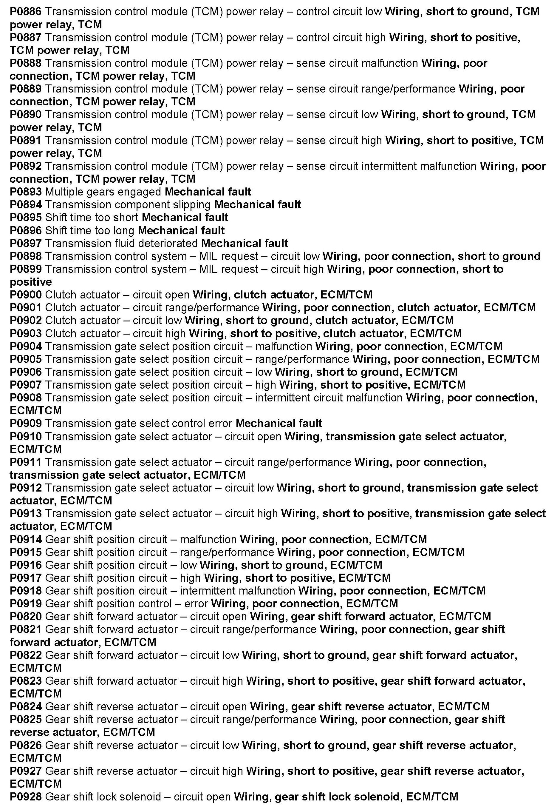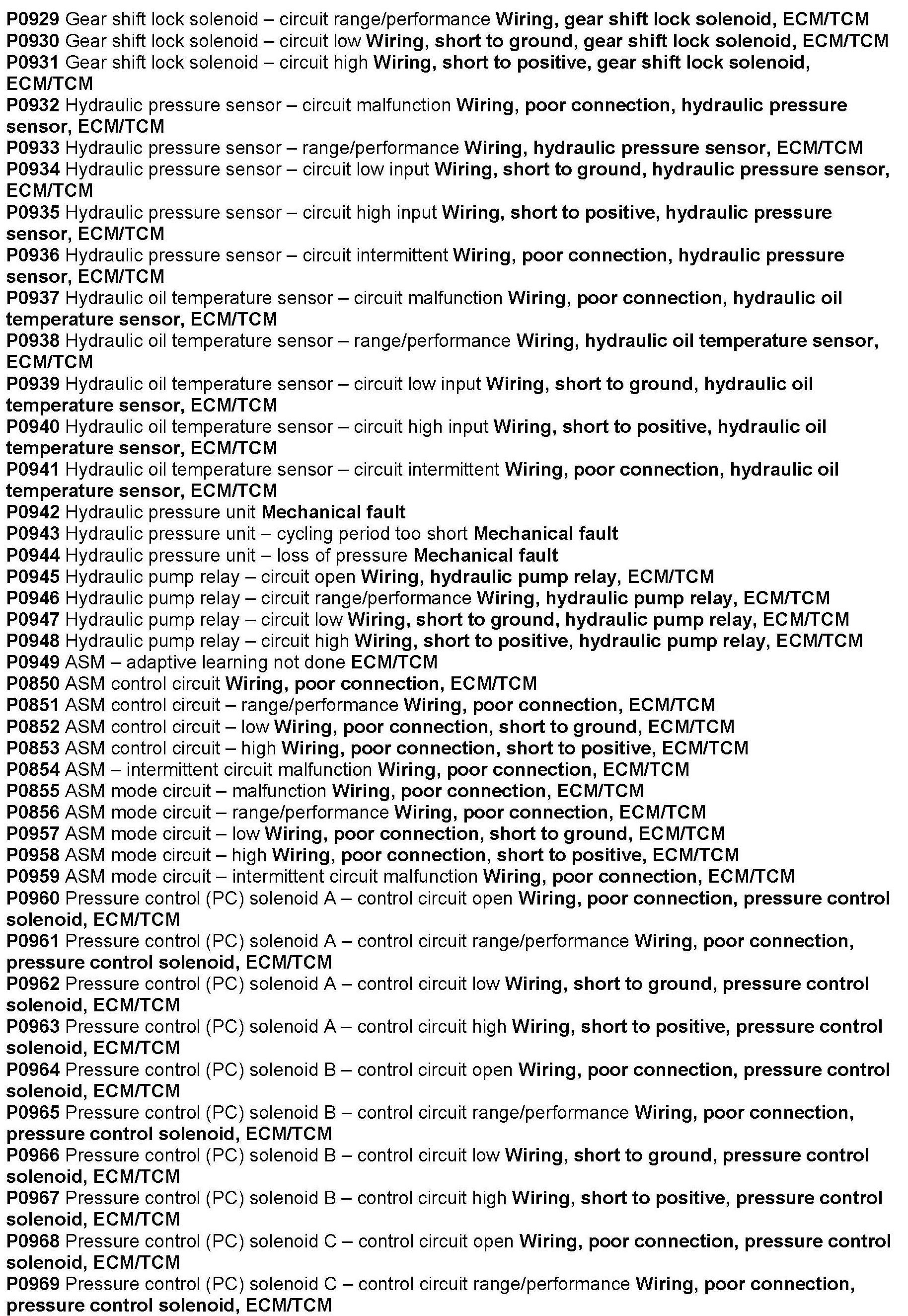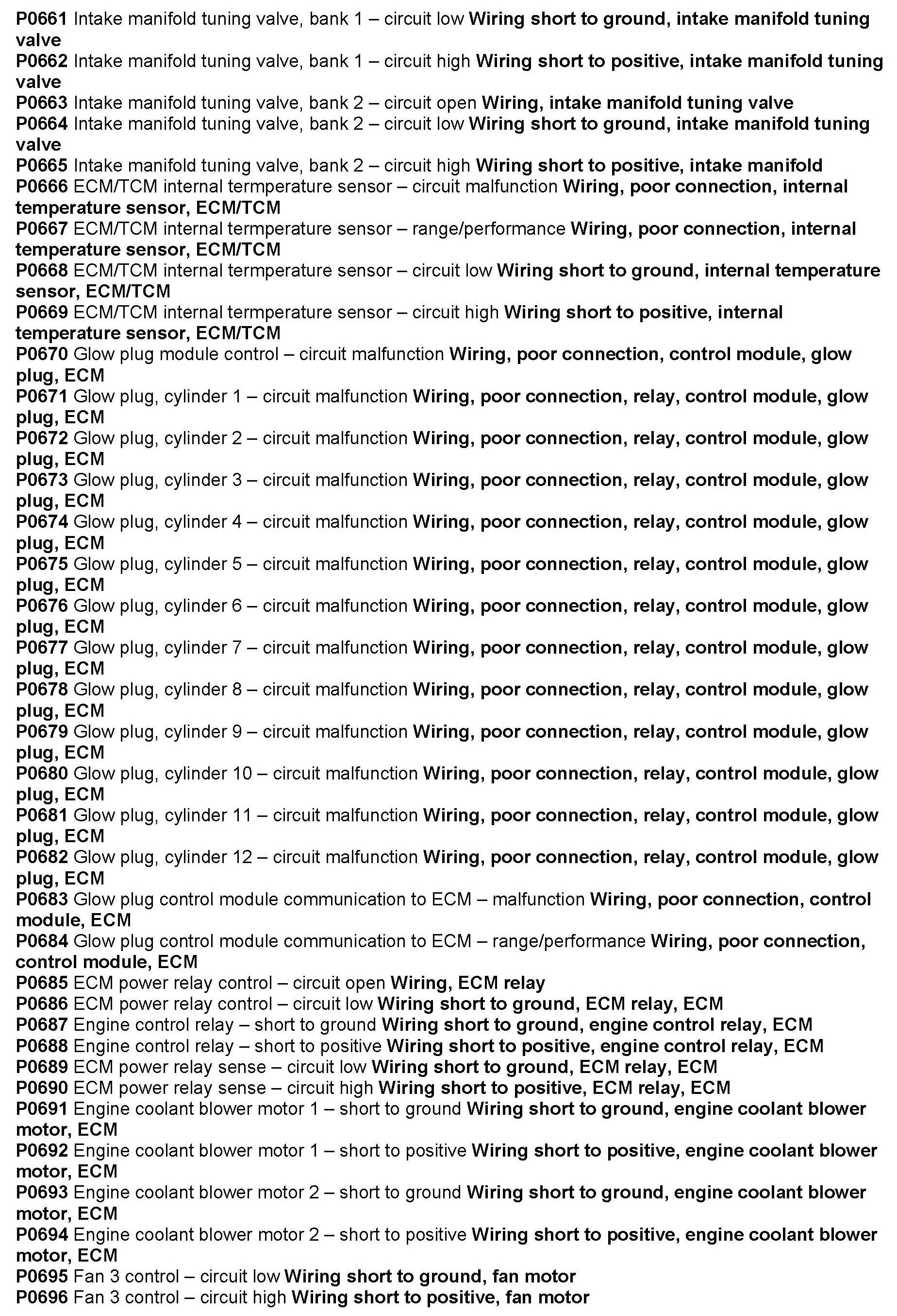 Computers/Controls - OBD-II Trouble Code Table: Overview