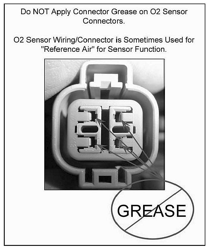 Do not use connector grease on 02 sensor connectors. The grease may cause electrical connection problems.