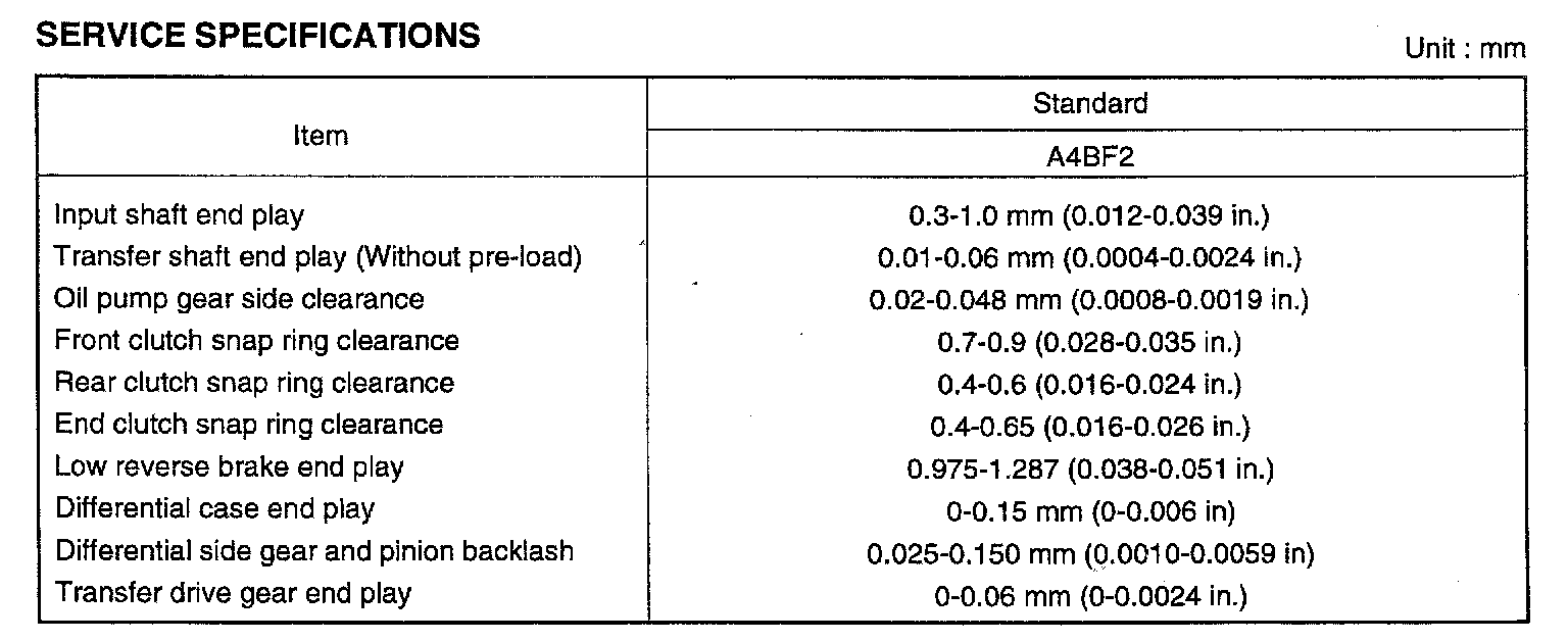 A4BF2 4-spd A/T, Standard Unit Of Values:
