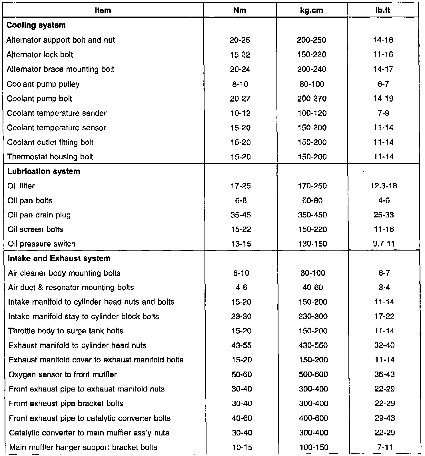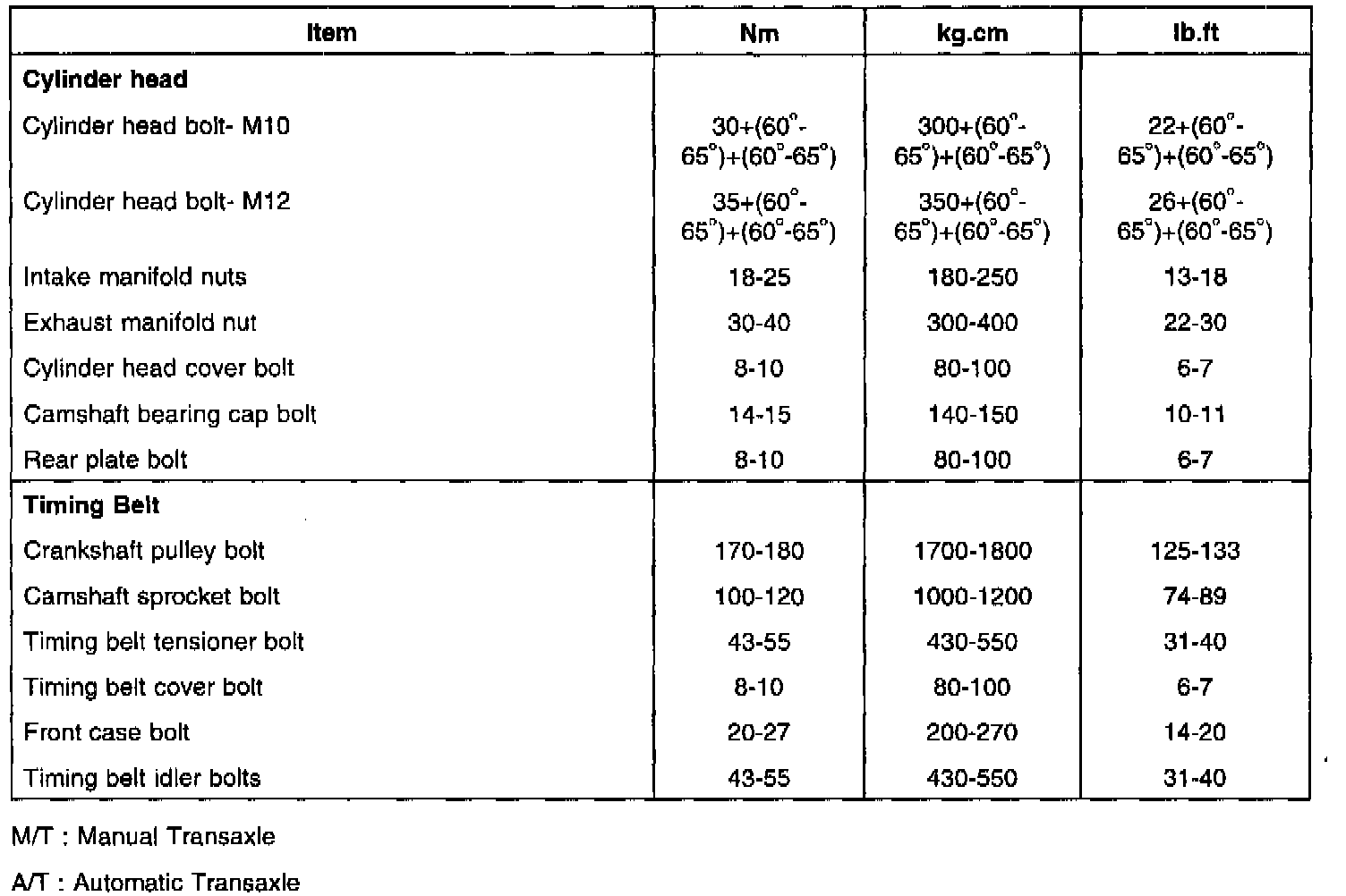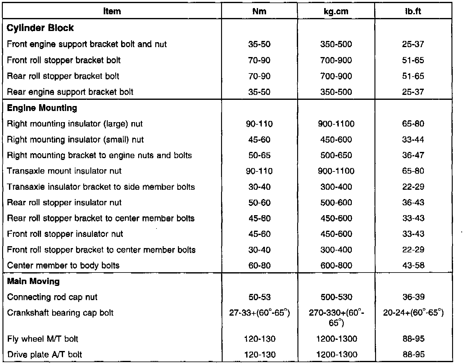 Home >> Hyundai >> 2000 >> Tiburon L4-2.0L >> Repair and Diagnosis >> Specifications >> Mechanical Specifications >> Engine >> Cylinder Block Assembly >> System Specifications >> General Torque Specifications