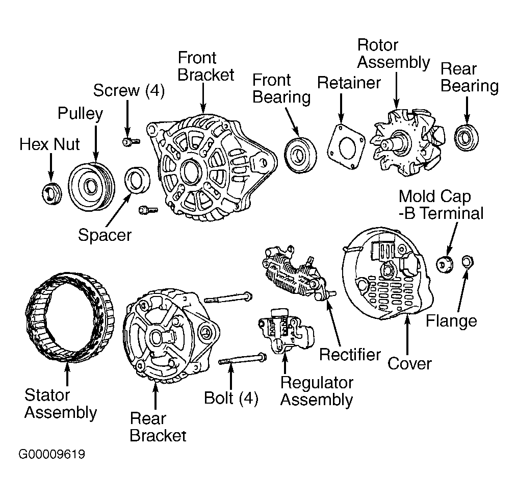 Fig 3: Exploded View Of 95-Amp Generator (Sonata V6)