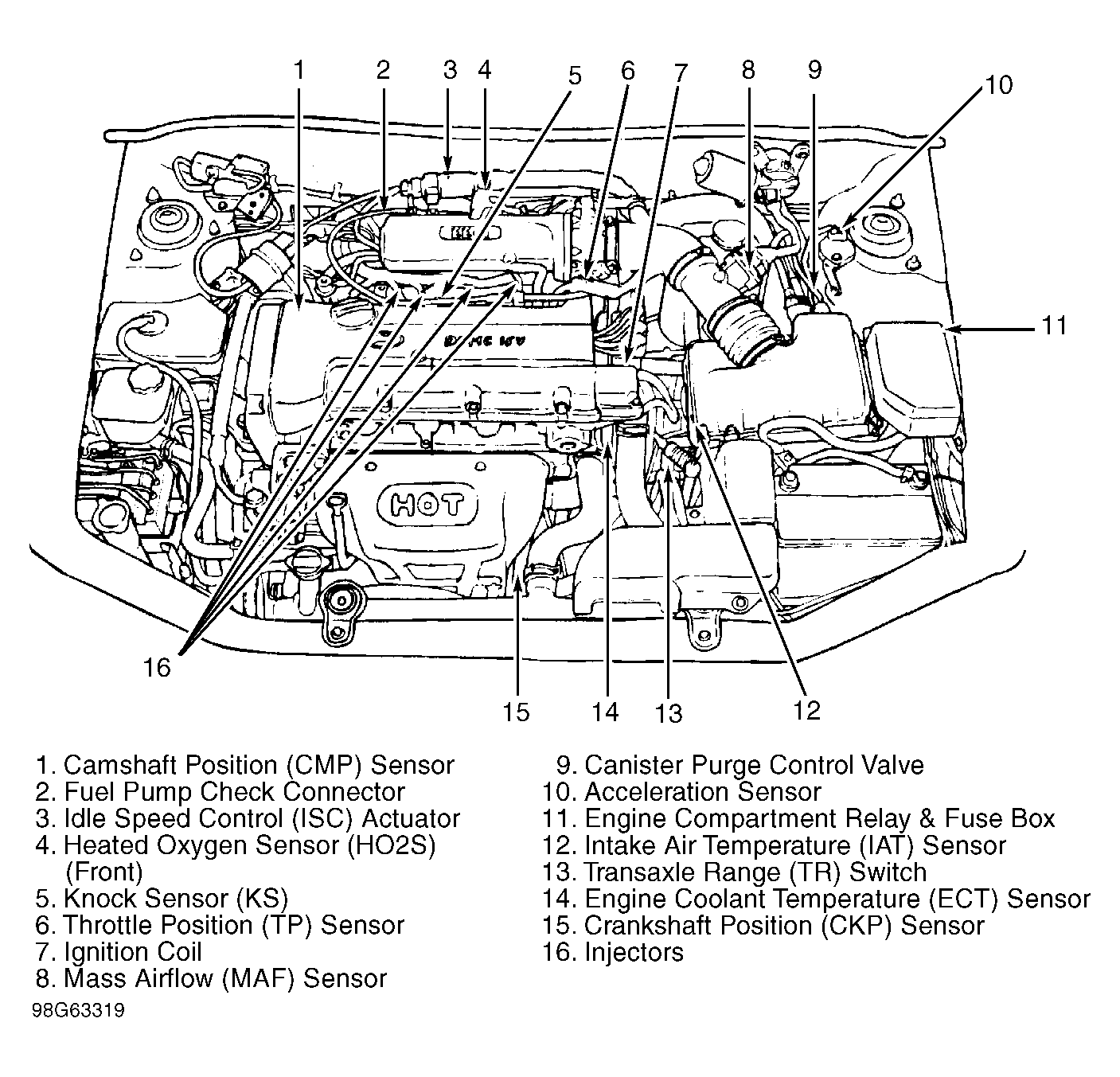 | Engine Compartment Relay & Fuse Box | Left side of engine compartment, in front of shock tower. See Figure . |