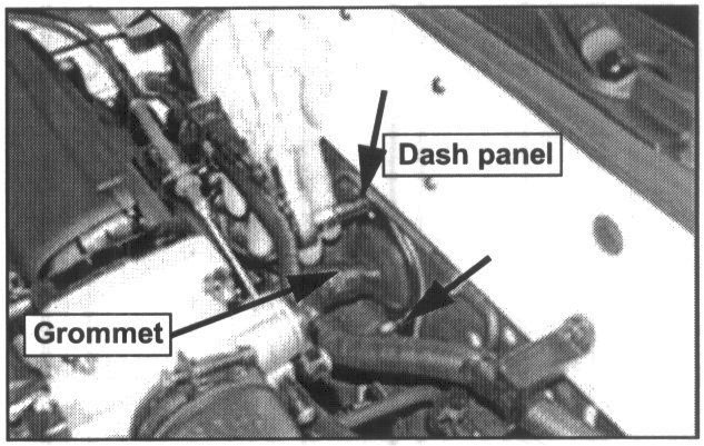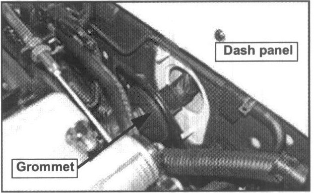 2. Remove the mounting nuts (10 mm, 2 each) that secure the harness grommet to the dash panel.