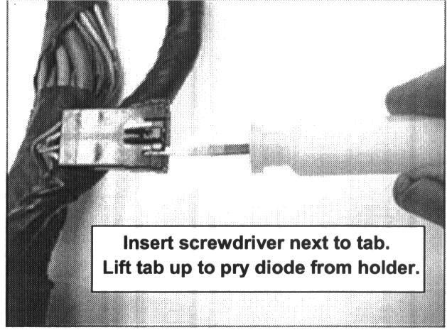 5. Insert a screwdriver next to the tab. Lift the tab up and pry the diode from the holder.
