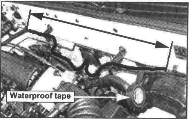 9. Wrap waterproof tape around the harness along the portion as shown.