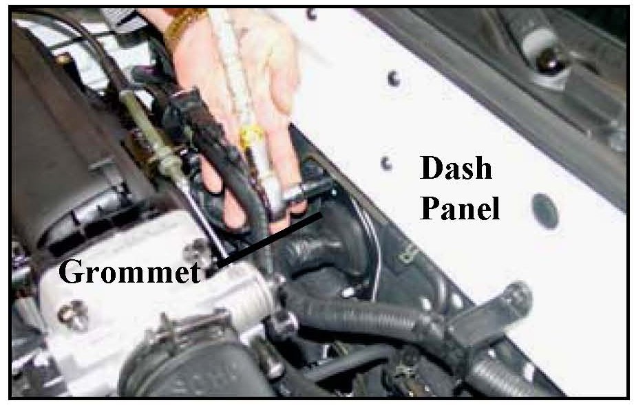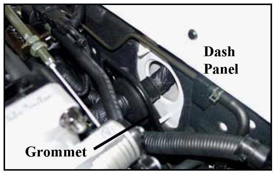 11. Reinstall the control wiring grommet in the dash panel hole and tighten the two 10 mm grommet mounting nuts.