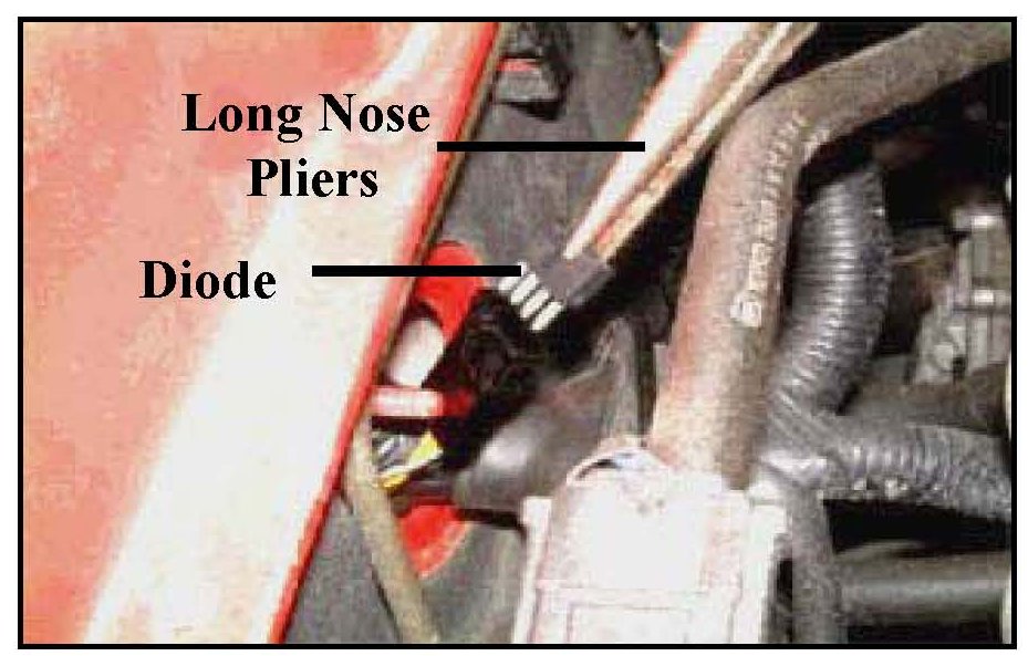 9. Apply electrical tape around the diode connector as shown and re-apply the yellow tape which was loosened in step #4.
