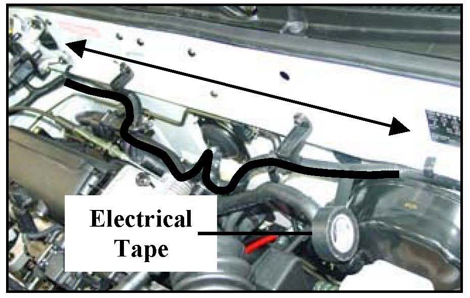 10. Apply electrical tape around the control wiring harness within the range as shown.