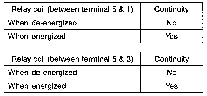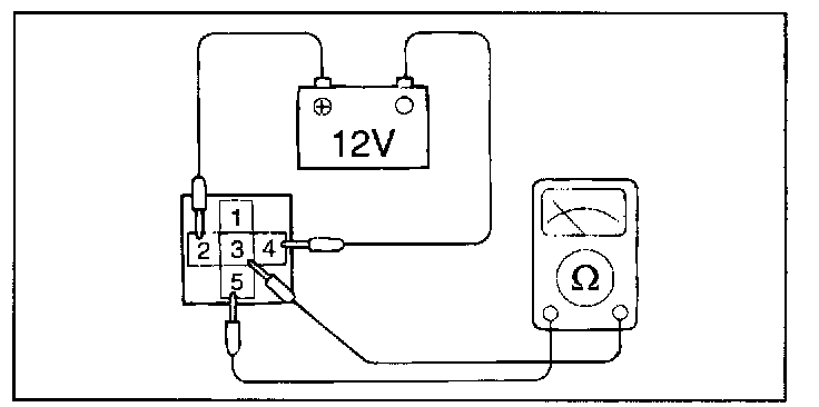 1. Check continuity of relay contacts between terminals 2 (+) and 4 (-).
