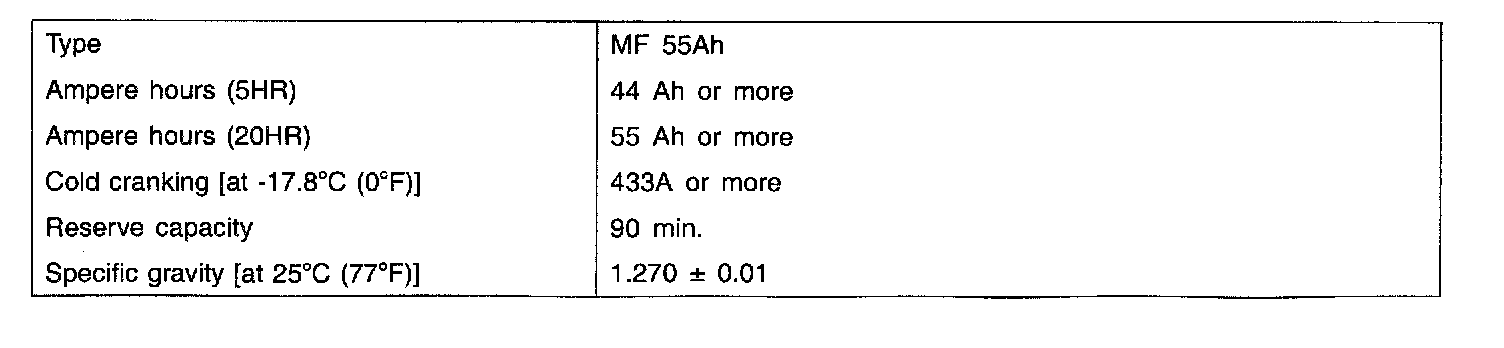 Home >> Hyundai >> 2001 >> Accent GL L4-1.6L >> Repair and Diagnosis >> Specifications >> Electrical Specifications >> Battery