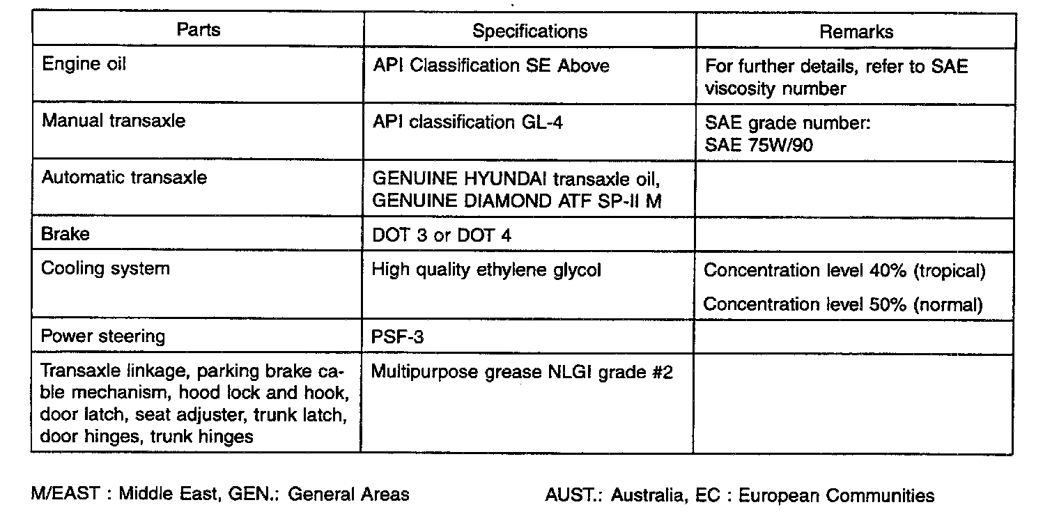 General Fluid Specifications