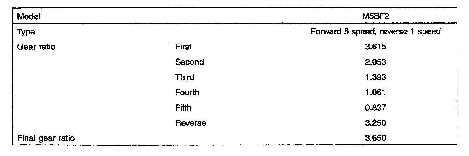 M5BF2 5-spd M/T, Transmission Gear Ratios: