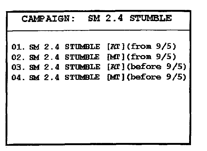4. Select menu option "05. SM 2.4 STUMBLE" and press ENTER.