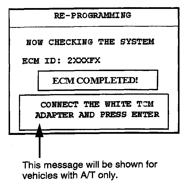 17. When the "ECM & TCM COMPLETED" message is displayed, the TCM reprogramming process is finished.