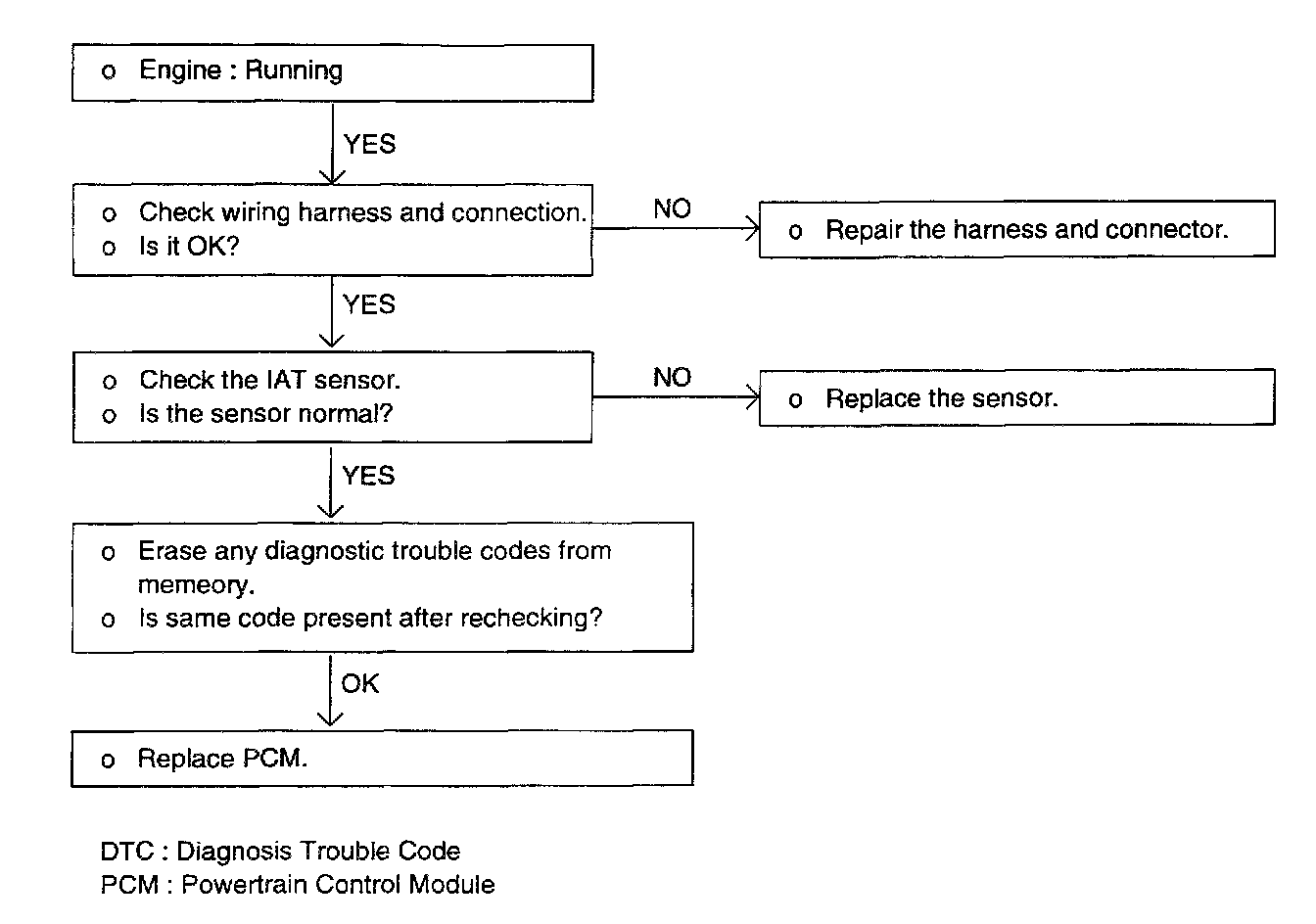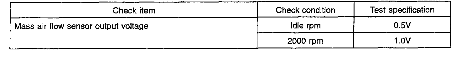 3. If the engine can idle even if the MAF sensor output voltage is out of specification, check for the following conditions;