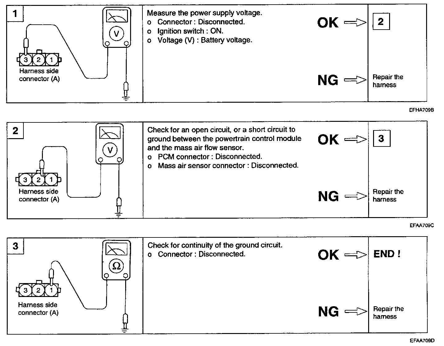 1. If the engine stalls occasionally, start the engine and shake the MAF sensor harness. If the engine stalls, check for poor contact at the MAF sensor connector.