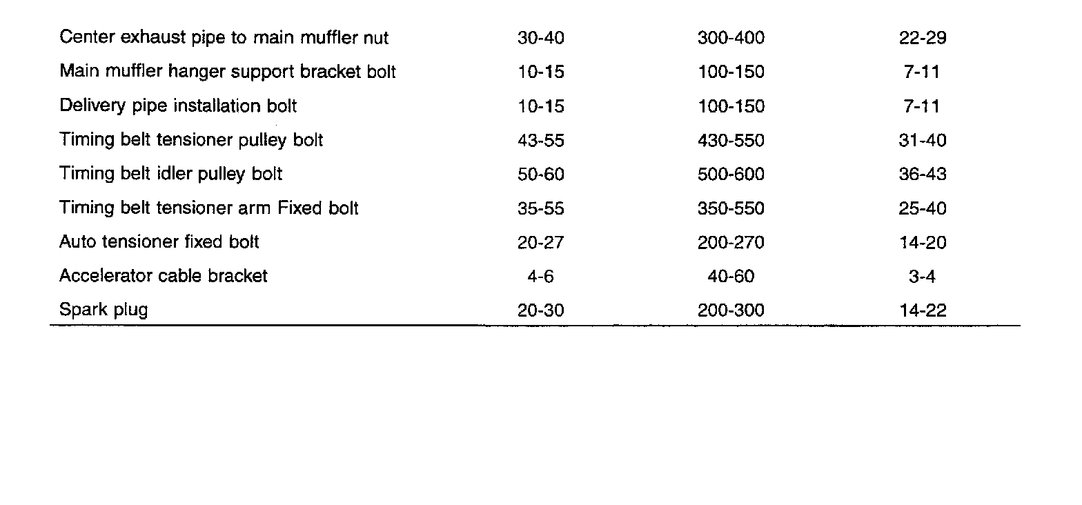 General Torque Specifications