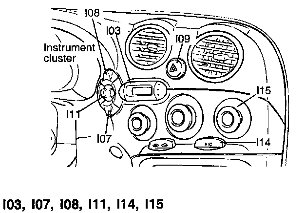 I03 Digital Clock, I07 Cruise Switch, I08 Rear Defogger Switch, I11 Rear Wiper And Washer Switch, I14 A/C Switch, I15 Blower Switch:
