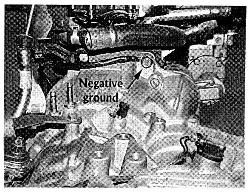 3. Clean the connection between the negative battery cable and the transaxle case. Reinstall the cable.