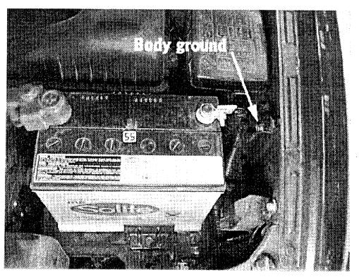 4. Clean the connection between the negative battery cable and the body ground bolt located next to the battery. Apply conductive grease to the connection before reinstalling the bolt.