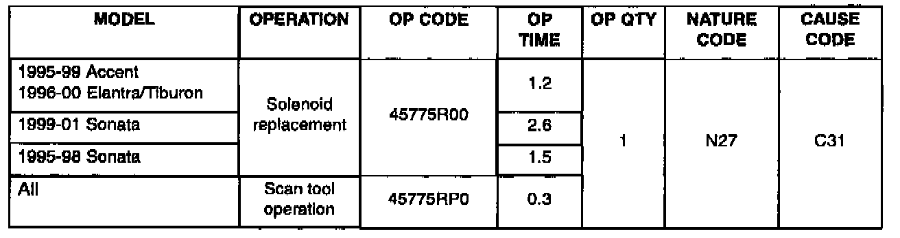 TCM DTC - PRE-OBDII: ELANTRA, TIBURON AND ACCENT PRIOR TO 1996, 1995-98 SONATA: