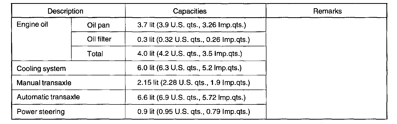 Lubricants Capacities: