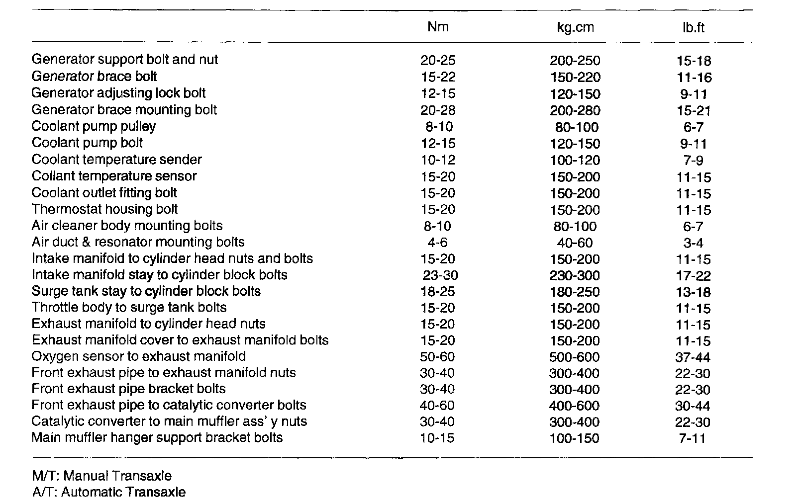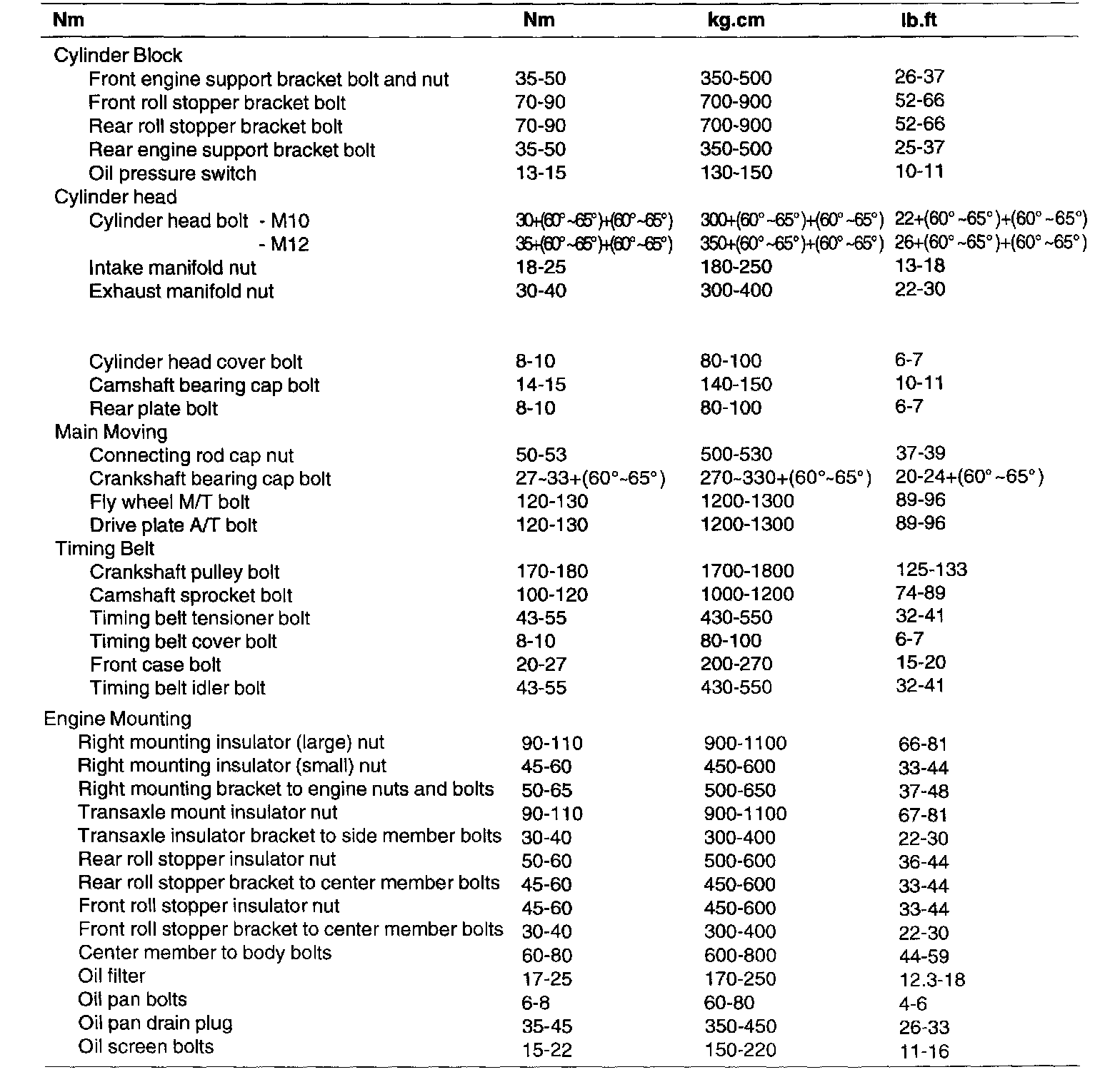 General Torque Specifications
