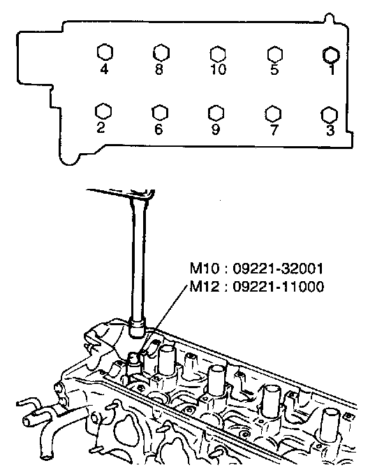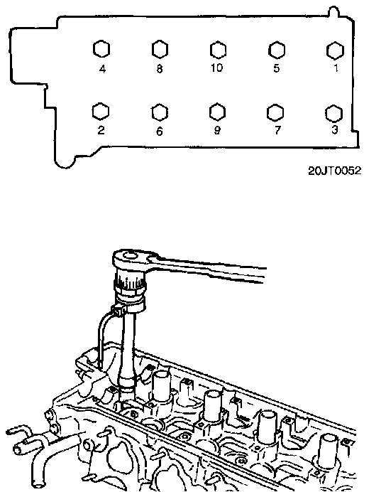 Note: Do not reuse cylinder head bolts over 2 - 3 times.