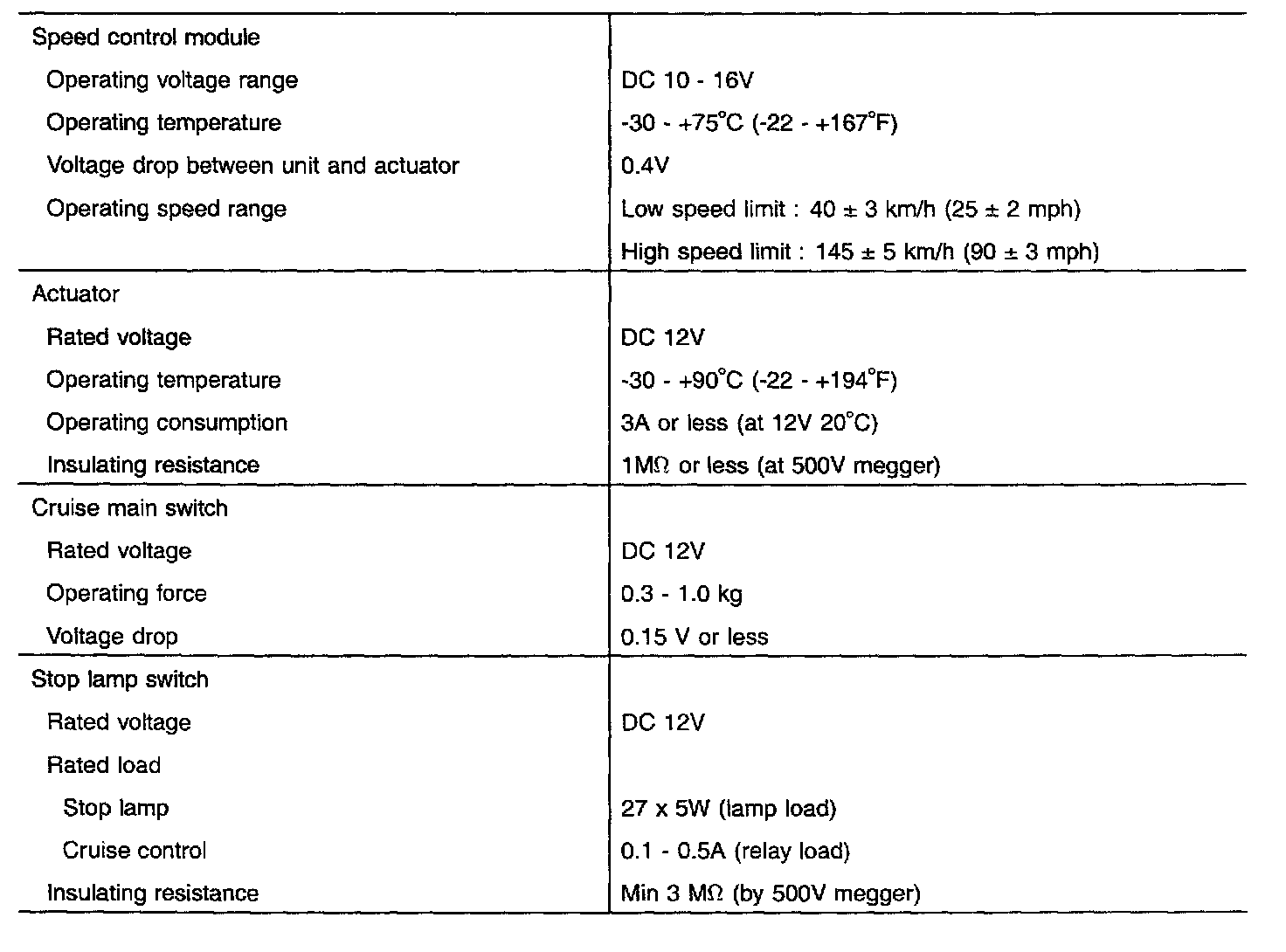 Cruise Control: Specifications