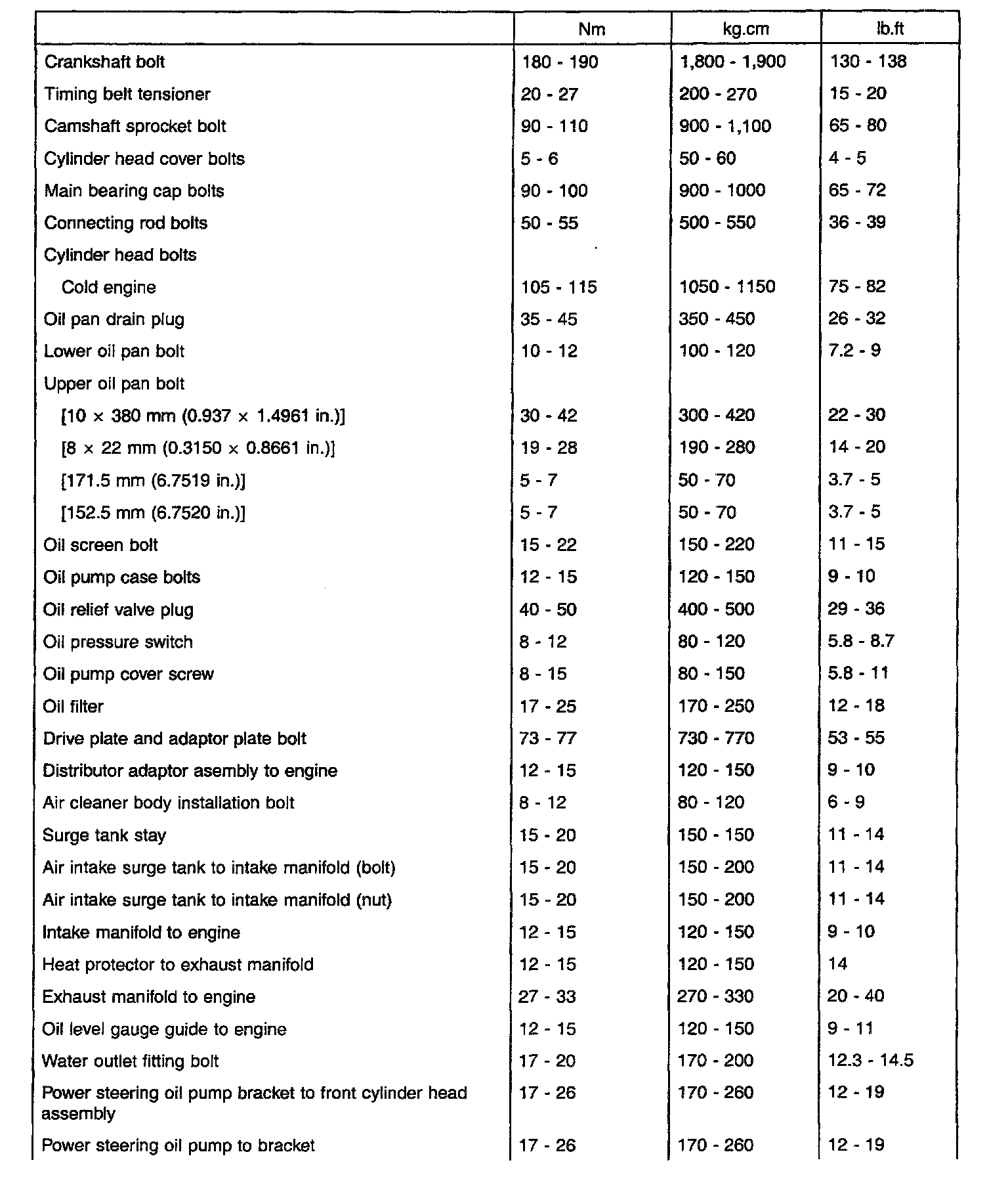General Torque Specifications