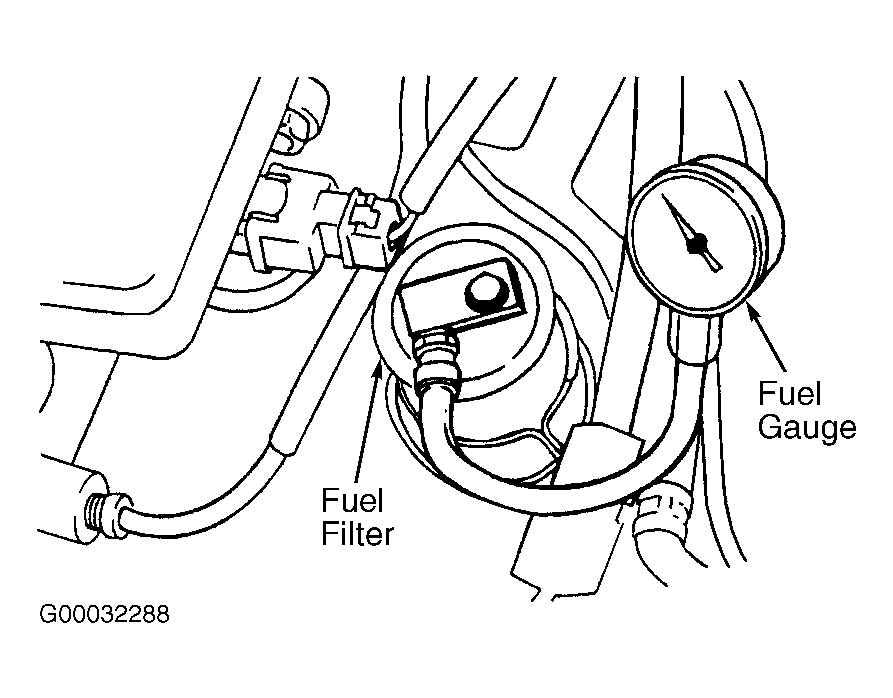 3. Using fuel pump check connector terminal, activate fuel pump and ensure no fuel leakage are present at pressure gauge or connection. See FUEL PUMP TEST . If no leaks are present, start engine and allow to idle.