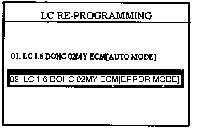 NOTE:In the event menu option "01. LC 1.6 DOHC 02MY ECM [AUTO MODE]" fails to download the new ECM program, option "02. LC 1.6 DOHC 02MY ECM [ERROR MODE]" must be used.