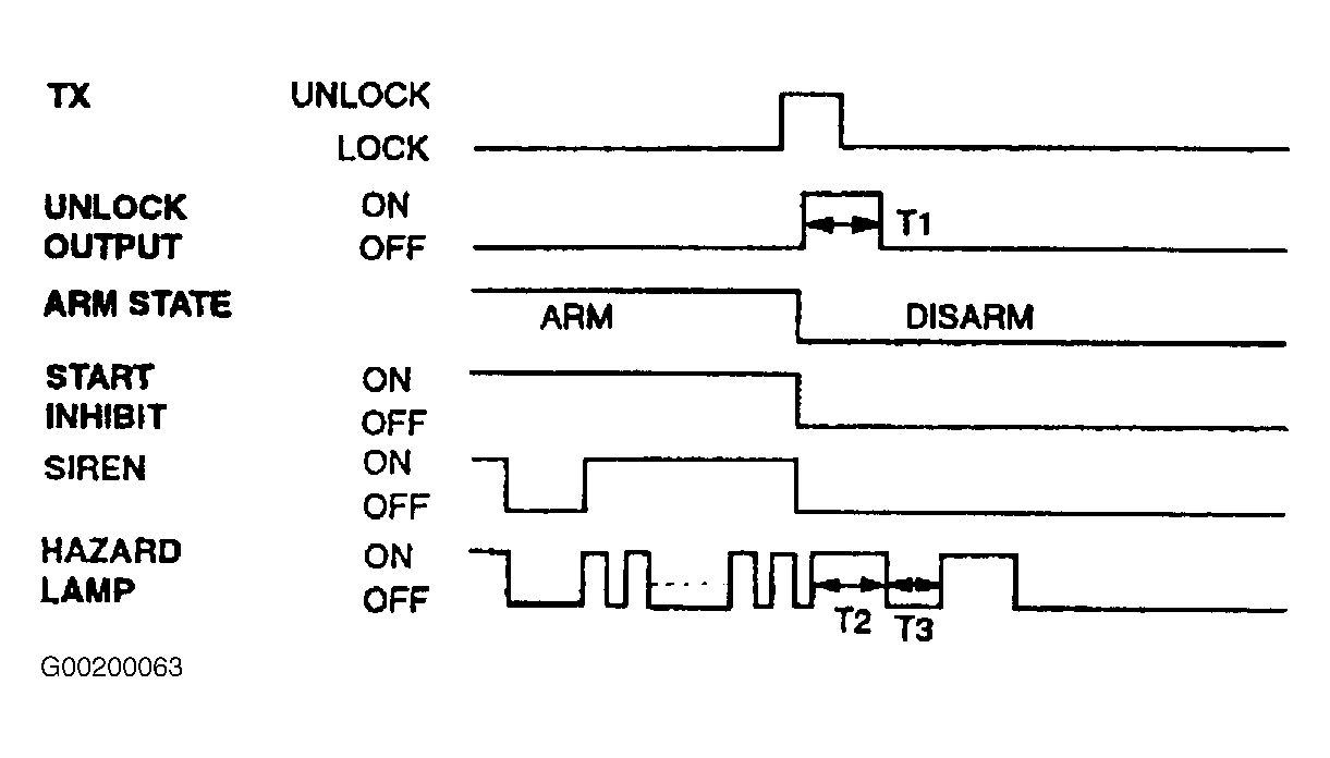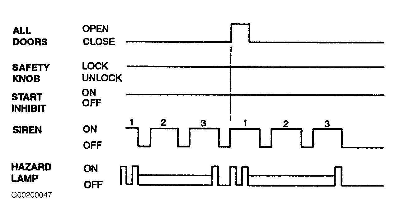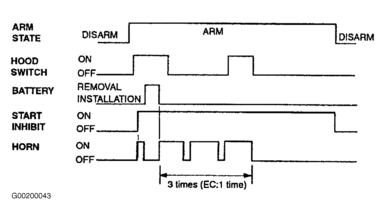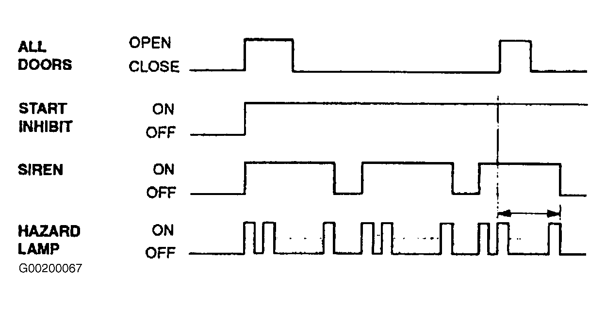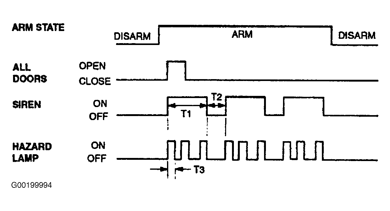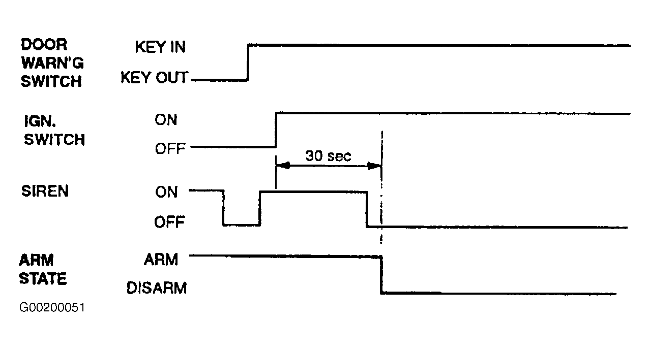 6. Disarmed after 30 sec when the ignition switch is turned on while the alarm is sounding.