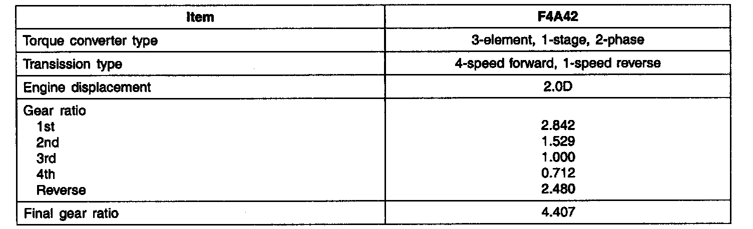 SPECIFICATIONS (A/T)Torque Converter Type 3-element, 1-stage, 2-phase